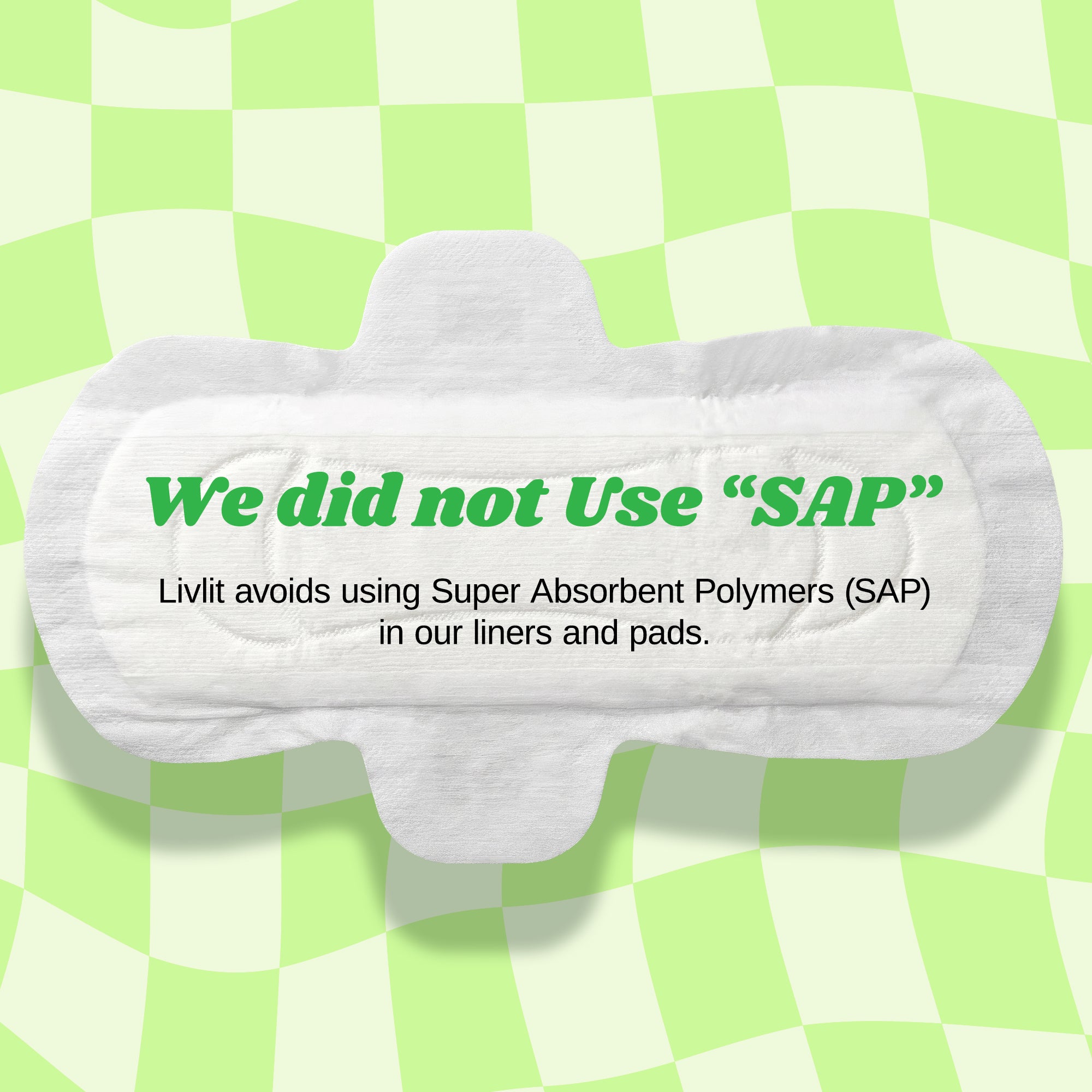 Made Without- SAP, Synthetic fibers, fragrance, dyes, superabsorbent polymers, deodorant, chlorine bleach.